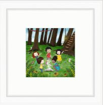 Alexandra MacVean was commissioned to create a commemorative illustration that honors 10 years of The Children’s Book Review’s mission of growing readers. She is a professional award-winning, freelance children’s illustrator who creates vibrant, whimsical illustrations for children’s books, greeting cards, and more. Her desire is to touch the lives of adults and children alike, bringing some sort of hope, peace, and love along the way. The 6″ x 6″ print is surrounded by a white mat and a thin white frame that looks great in any space.